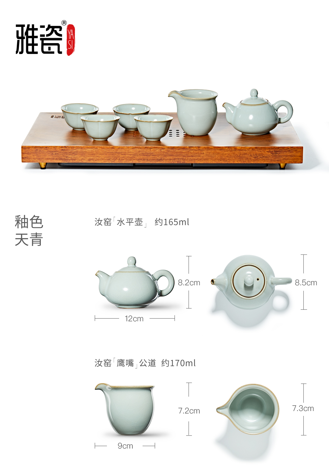 汝窑水平壶套装+宽厚茶台
