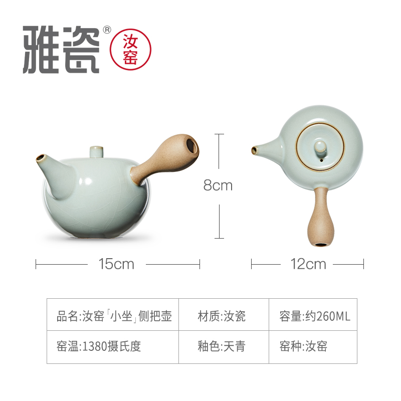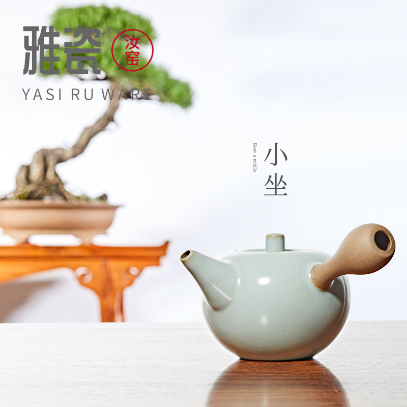 汝窑小坐侧把壶 茶壶